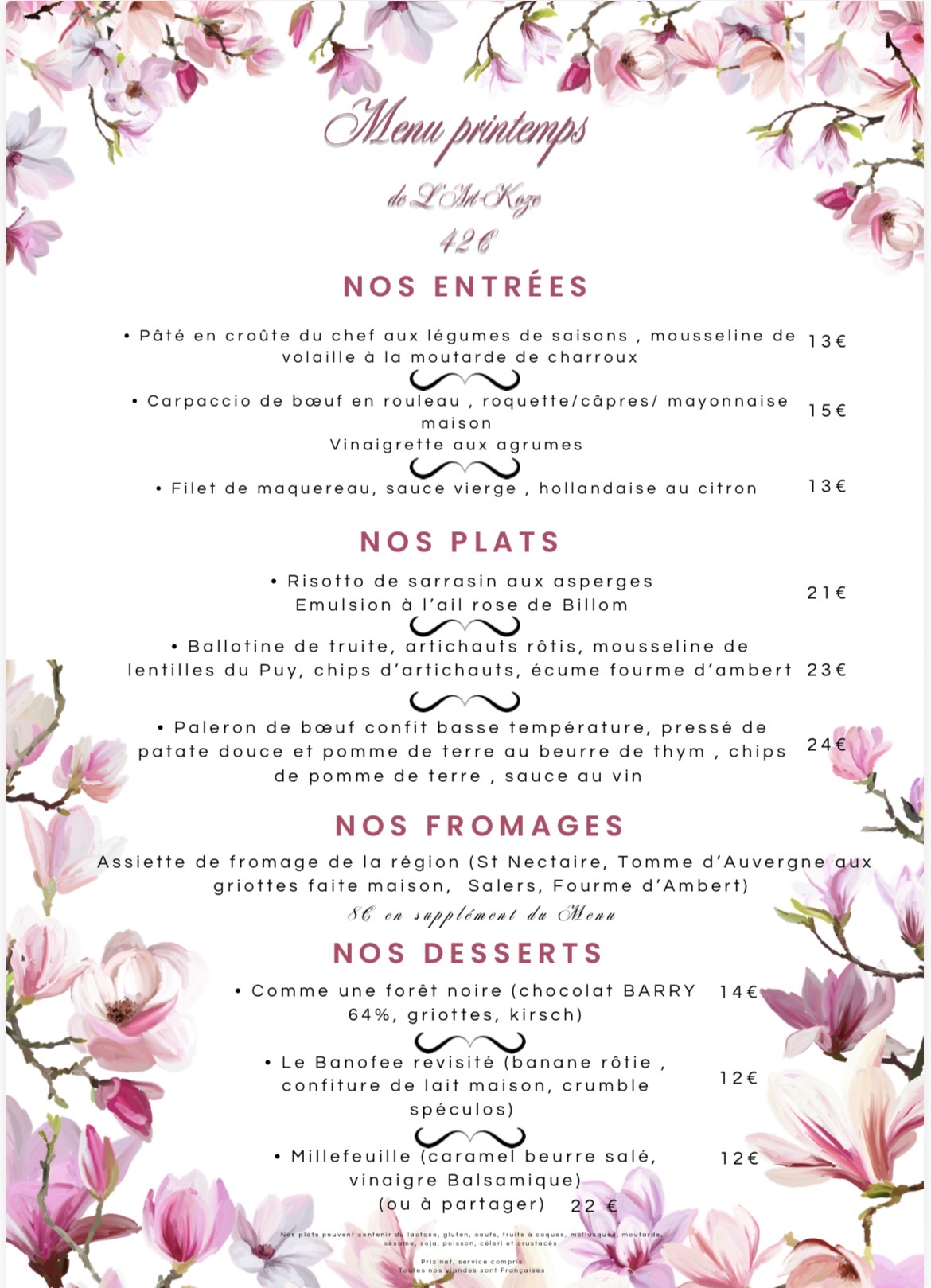 Votre restaurant « Art Koze » vous propose son menu de Pâques.